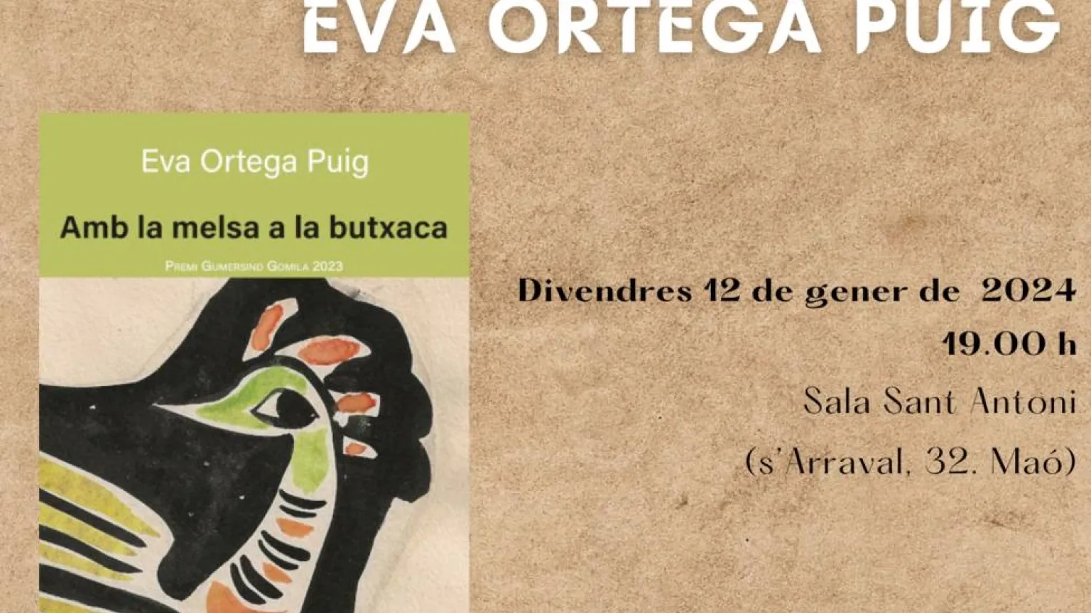 El Ayuntamiento de Maó presentará el próximo viernes 12 de enero la obra ganadora del III Premio de Poesía para Jóvenes Gumersind Gomila 2023,"Amb la melsa a la butxaca" , de Eva Ortega Puig.