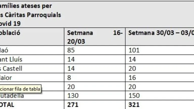 En Cáritas Menorca mantenemos los esfuerzos para llegar a las personas y familias que más lo necesitan en nuestra isla, para ello necesitamos la colaboración de voluntarios, particulares y empresas, que con donaciones en tiempo o materiales nos ayudan a poder cubrir las necesidades que van aumentando, por la crisis del coronavirus. El acompañamiento desde las parroquias y sus servicios de alimentos se ha incrementado un 15% en las últimas semanas, en estos momentos 321 familias reciben ayudas alimentarias a través de las bolsas habituales de alimentos y de vales para la compra de producto fresco en tiendas y supermercados de Menorca.