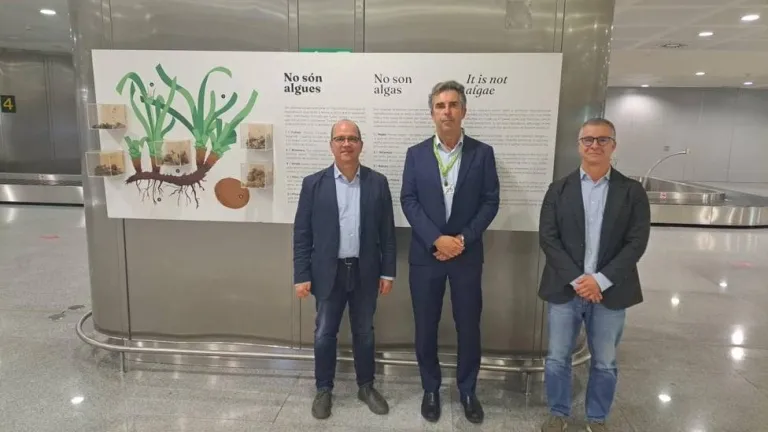 En total se expondrán 8 paneles en el aeropuerto con información sobre la antigüedad de las praderías y bosques submarinos de posidonia en las Baleares, sus características biológicas, sus funciones ecológicas o sus beneficios y amenazas, entre de otra información.