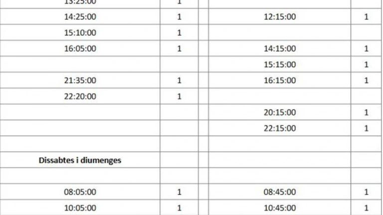 Esta parada tendrá entre semana, 19 frecuencias al día entre idas y vueltas, de un sentido y de otro. Los sábados y domingos, habrá 17 frecuencias al día, también entre idas y vueltas. Durante el verano, el número de frecuencias de buses aumentará.
