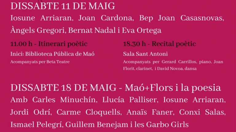El Ayuntamiento de Maó organiza por 5º año el Festival de Poesía que tendrá lugar este sábado 11 de mayo.