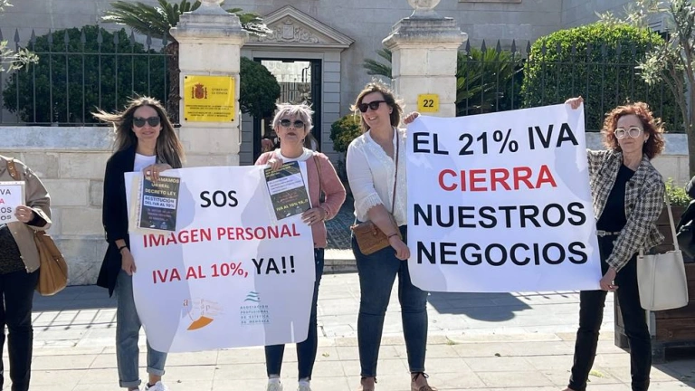 La nueva oleada de protestas de la imagen personal para exigir la restitución de su IVA reducido como servicio esencial enmarcada en la campaña AHORA VOTAMOS NOSOTROS ha llegado hoy a la Delegación de Gobierno en Mahón con una nueva manifestación.
