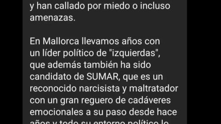 En el primer mensaje en la cuenta de Instagram abusos_baleares se asegura que "el afiliador vaginal" ha sido candidato de SUMAR
