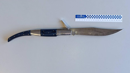 Durante la identificación del conductor, español de 22 años, se le intervino una navaja con una hoja de 24 centímetros, hallada en la guantera de la puerta del conductor