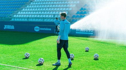 El joven guardameta de 20 años del Atlético Baleares está sacando las castañas del fuego en ausencia por lesión de Jagoba. No le afectan las noticias sobre la posible llegada de otro portero