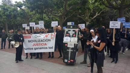 Funcionarios de La Rioja escenifican el "entierro" de la Justicia en su primera jornada de huelga indefinida
