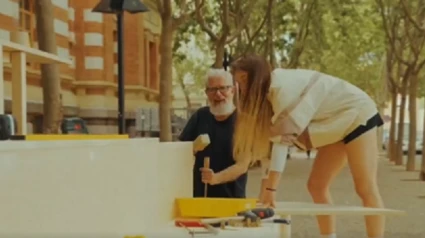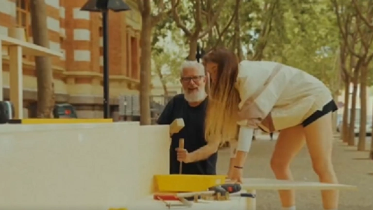 "Supergráfica", una pequeña grada amarilla que, iluminada por el sol, proyecta un paso de cebra