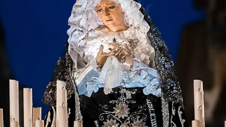 La Virgen de la Soledad procesiona en Viernes Santo sin su extraordinario manto que está siendo restaurado