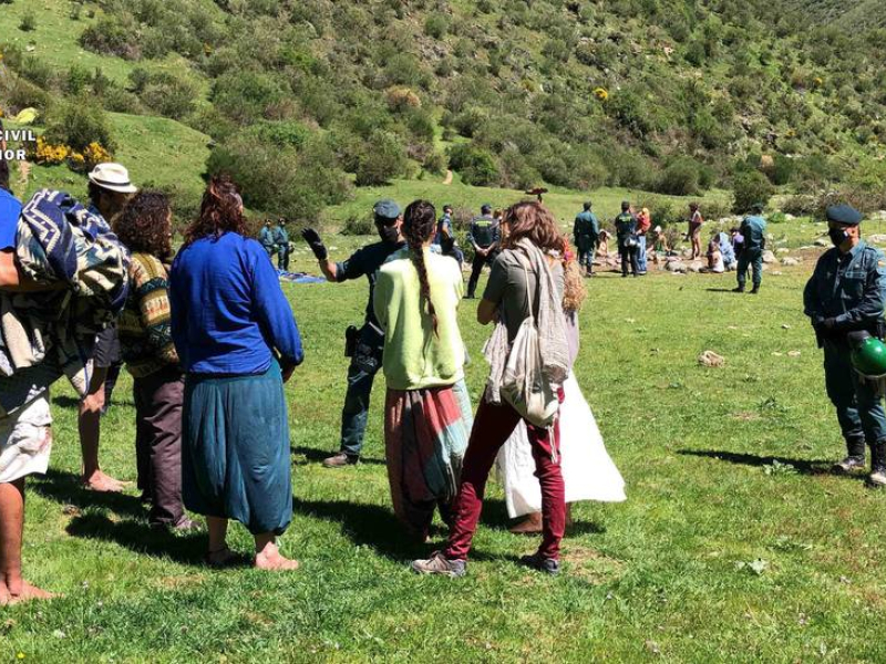 Al punto exacto de la acampada sólo se puede acceder andando los dos últimos kilómetros. Otros 70 integrantes de la “Familia Arcoíris” evitaron la sanción al abandonar el lugar durante los requerimientos de los agentes de la Guardia Civil.