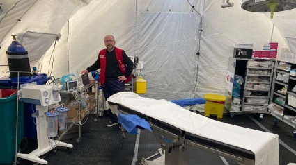 Alberto Lafuente en el interior del hospital de campaña instalado por el equipo 'Start' en la provincia de Hatay, al Sur de Turquía.