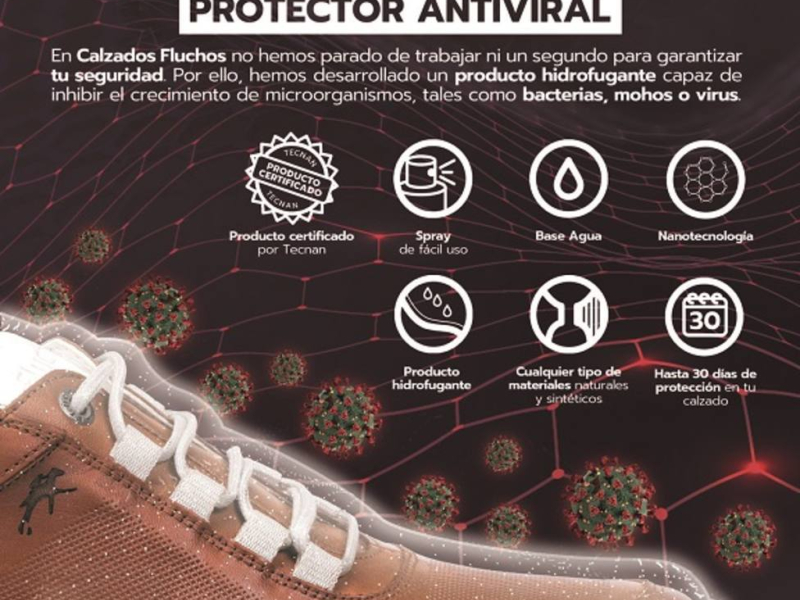 El spray antiviral, que se puede comprar en todas las tiendas 'Fluchos' y a través de su página web, es clave, según Sáenz, para fomentar la venta en tiendas al permitir que los clientes se prueben los zapatos en los comercios con seguridad.
