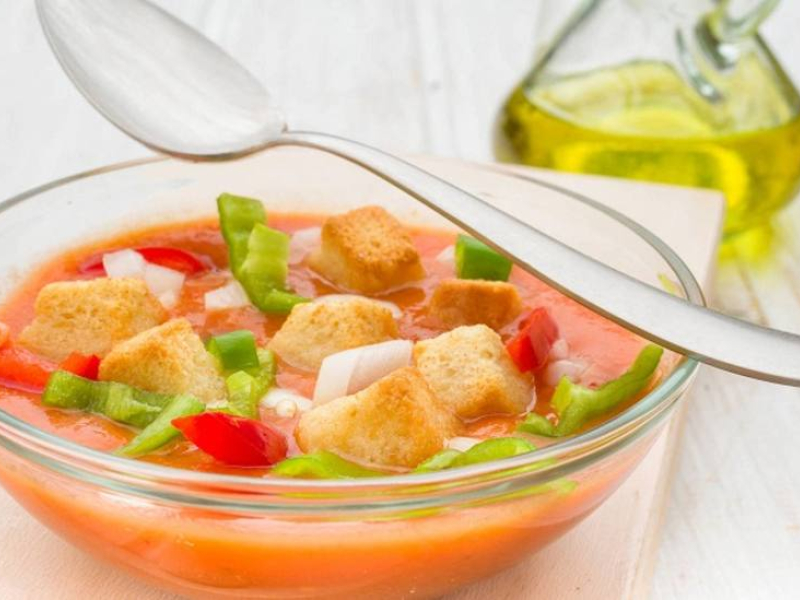 Servirlo correctamente. Las prisas a la hora de la comida nos han hecho olvidar, en muchas ocasiones, la importancia de servir bien un plato. En el caso del gazpacho que no falten los picatostes de pan naturales y los trocitos de cebolla, tomate y pepino. Porque sin guarnición, no podemos decir que un gazpacho está perfecto.