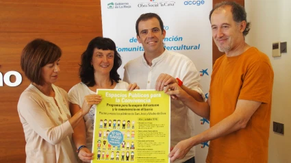 El concejal de Servicios Sociales y Desarrollo Comunitario, Iván Reinares; la directora general de Servicios Sociales y Ciudadanía, María Luisa Ruiz de Escudero; la representante de la Asociación Vecinal Madre de Dios, Marian Alcalde, y el coordinador del Proyecto de Intervención Comunitaria Intercultural (ICI), Alfonso Troya, han presentado las actividades que componen la programación para septiembre y octubre de Espacios Públicos para la Convivencia.