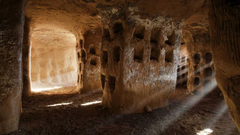 Siguiendo el viaje por la Comunidad riojana, llegamos ahora al territorio de la Ruta del Vino de Rioja Oriental y, concretamente, hasta la localidad de Arnedo. Bajo el Cerro de San Miguel se encuentra el que sin duda es el complejo rupestre más intrincado y asombroso de todo el Valle del Cidacos: la Cueva de los Cien Pilares. Su origen se remonta la Edad Media cuando la inseguridad en los valles obligó a sus habitantes a buscar refugio en lugares más protegidos, ya fuera en la montaña o literalmente dentro de ella, con la construcción de estas cuevas.