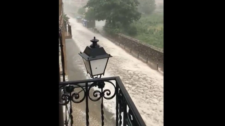 En la tarde de ayer lunes, las calles de Viniegra de Abajo se convirtieron en ríos por efecto de una gran tormenta, acompañada de granizo, según han explicado a EFE vecinos del municipio.