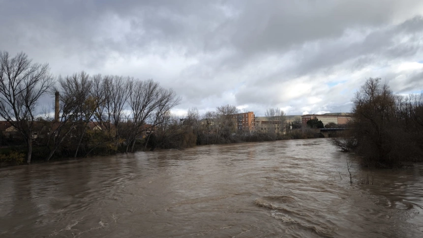 Había tensión anoche en Logroño. El Ebro apretó al máximo sobre las 10:50 de la noche, cuando alcanzó su punto más alto, 3,49 metros de altura y un caudal de 751 metros cúbicos por segundo. Ese fue el momento cumbre, la punta de la crecida. Muchos vecinos se fueron a dormir con el río en la retina y la incertidumbre en la mente.