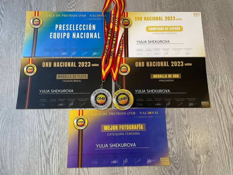 Yulia se proclamó campeona absoluta de peluquería de España, pero también primer puesto en categoría vanguardia, medalla de oro también en la de mejor fotografía y de plata en la de peinados de boda.
