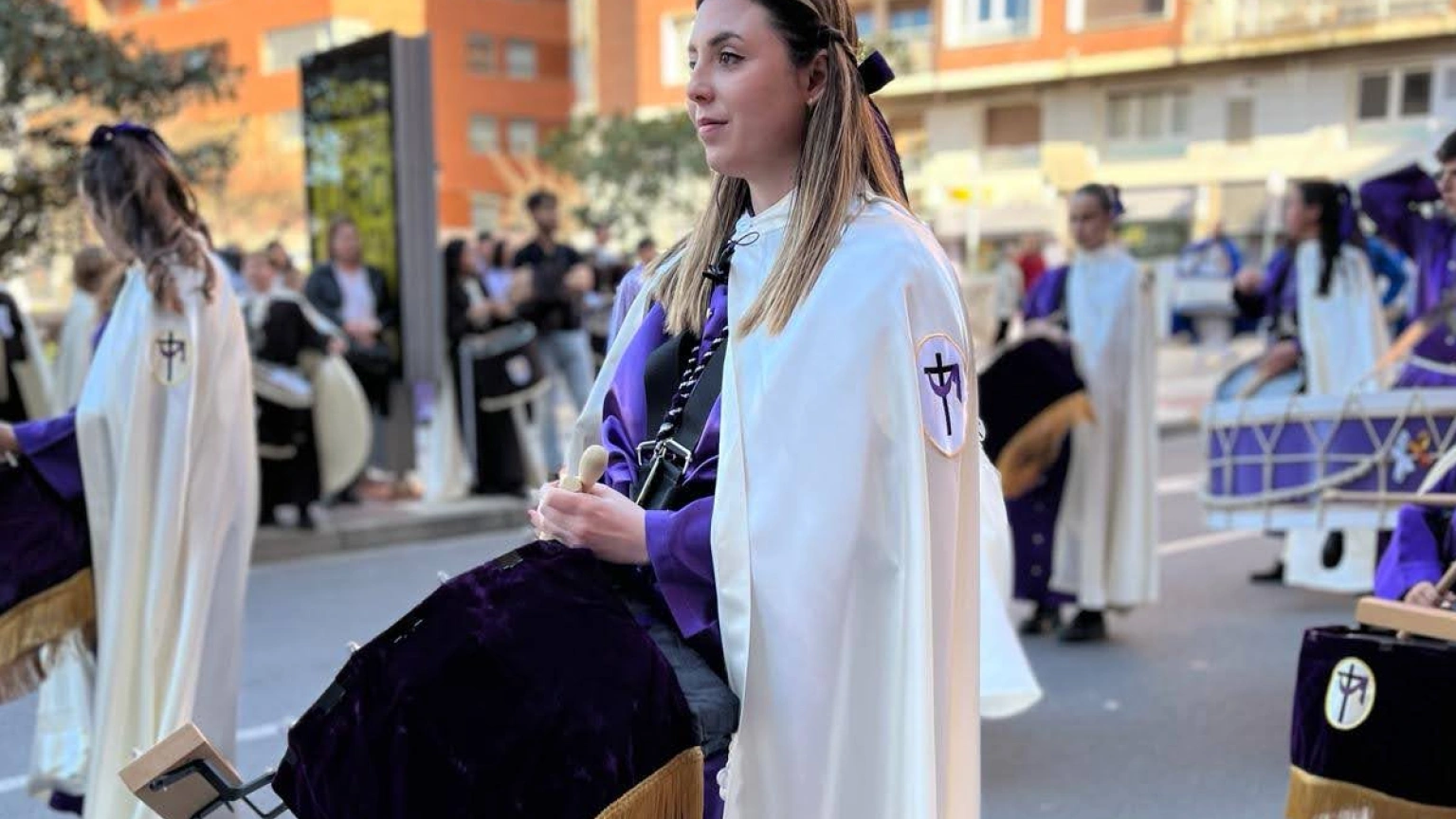 La presencia femenina es mayoritaria en esta banda, una realidad que consolida un largo recorrido. “Desde que entré siempre he tenido mujeres referentes, de jefas de banda, en el mismo puesto que yo”, explica Raquel, quien lleva en la formación desde 2005. Ahora, ella misma espera “poder serlo para las nuevas generaciones”, consolidando un liderazgo femenino que ya es habitual en la cofradía.