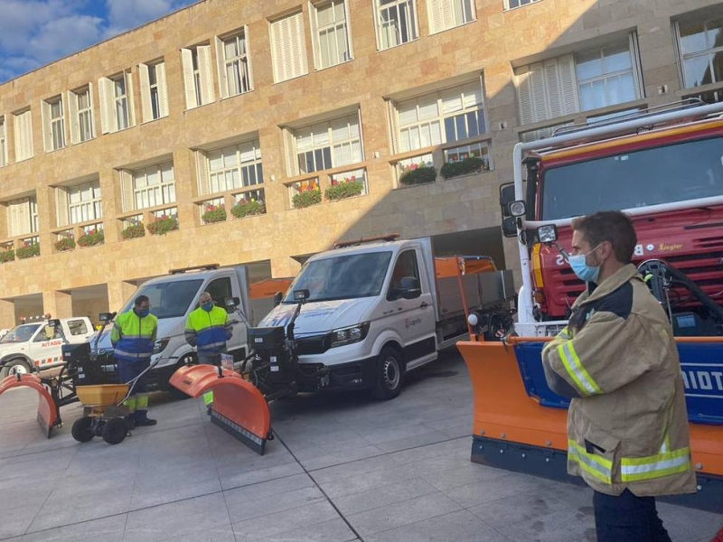 Asimismo, para situaciones críticas, están a disposición del Ayuntamiento un refuerzo de maquinaria compuesta por ocho minis con cuchilla y rodillos, equipos especialmente útiles para la limpieza de calles y aceras en situaciones de heladas prolongadas que seguirán unas rutas determinadas preestablecidas, además de equipos quitanieves como un tractor y dos todoterrenos 4x4 dotados con equipos quitanieves y esparcidores de sal. Esta colaboración público-privada para situaciones críticas cuenta con intervención de refuerzo de la empresa Aitago servicios y mantenimiento.