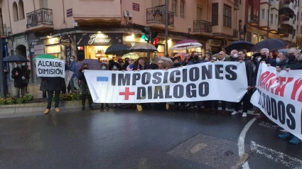 Vecinos y comerciantes de la calle República Argentina de Logroño se manifestaban, este jueves por la tarde, para protestar por la obra que afectará al tramo de esta calle, desde Gran Vía y el de Pérez Galdós.