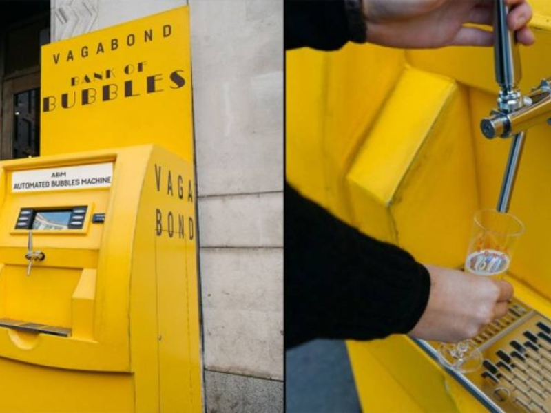 Según recoge Vinetur, la revista digital del vino, en un intento reciente de hacer que los londinenses mejoren su estado de ánimo después del frío y la humedad, un bar de vinos en el centro de Londres creó una máquina estilo cajero automático que distribuye Prosecco a los transeúntes. La idea es de Vagabond Wines que dirige ocho bares de vinos en la ciudad en los que venden diariamente más de 100 vinos por copa, de barril, por lo que decidieron establecer una 'Cajero Automático de Burbujas' en la fachada exterior del bar.