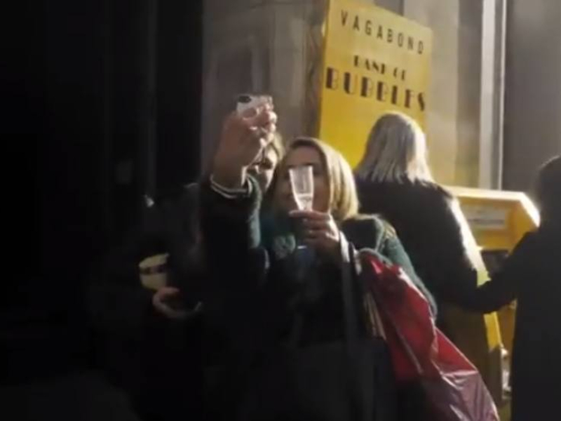 Un bar de vinos en el centro de Londres ha puesto en marcha una máquina estilo cajero automático que dispensa vino espumoso entre los transeúntes