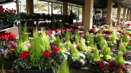 Un mercado tradicional que ofrece plantas de calidad y centros elaborados con gran variedad de flores. Seguimos encontrando los tradicionales crisantemos, claveles y gladiolos pero también se hacen hueco en los grandes centros otras flores como las rosas azules.