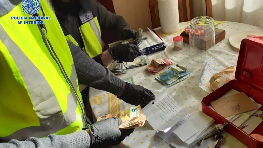 Los actuantes pudieron continuar con el registro domiciliario, donde intervinieron 30 gramos de cocaína, en roca, para su venta y consumo inmediata, 3.330 euros en billetes fraccionados, libreta con anotaciones manuscritas de personas y cantidades, otros útiles para el pesaje y preparación de las dosis que posteriormente serian vendidas, cuatro móviles y diversos medicamentos.