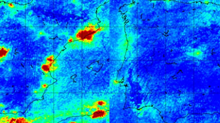 Según el mapa de la reducción de emisiones de dióxido de carbono en España, se aprecia también una clara disminución en el valle del Ebro: