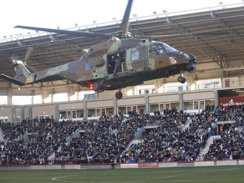 Como suele ser habitual, Melchor, Gaspar y Baltasar llegarán de nuevo en su helicóptero, gracias a la colaboración del Ayuntamiento de Logroño y el Ministerio de Defensa con su Batallón de Helicópteros de Maniobra 'Bhelma III'.