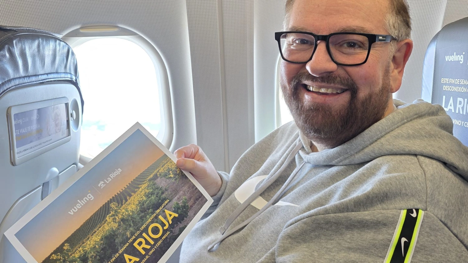 David, pasajero del primer vuelo Barcelona-Agoncillo: "En un pim pam hemos llegado a La Rioja, por carretera es un auténtico calvario"