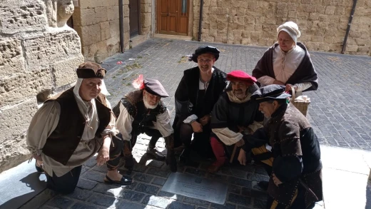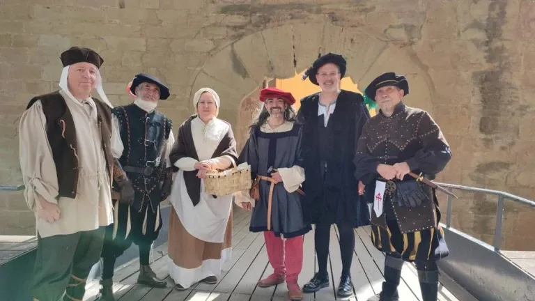 De esta guisa, salía Antoñanzas del ayuntamiento para dirigirse a la puerta del Revellín, donde le esperaba un grupo de recreacionistas. Y claro, un ordenanza del Consistorio preguntándole porqué se había vestido de Cervantes y luego miradas de sorpresa entre los viandantes.