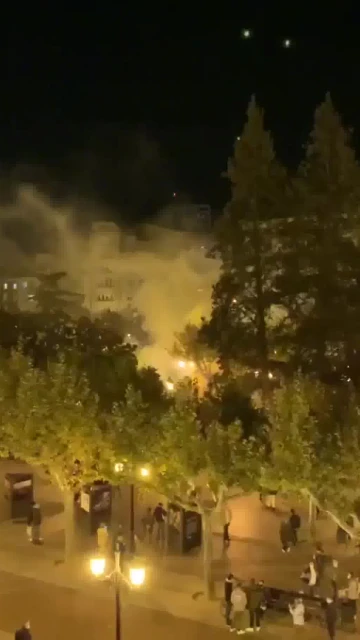 La convocatoria, que estaba organizada de manera extra oficial y no contaba con el permiso de la Delegación de Gobierno, para las 20,00 horas, ha comenzado con gritos de "Sánchez, Dimisión", entre otros, y en diferentes aglomeraciones, los asistentes han comenzado a lanzar bengalas y petardos.