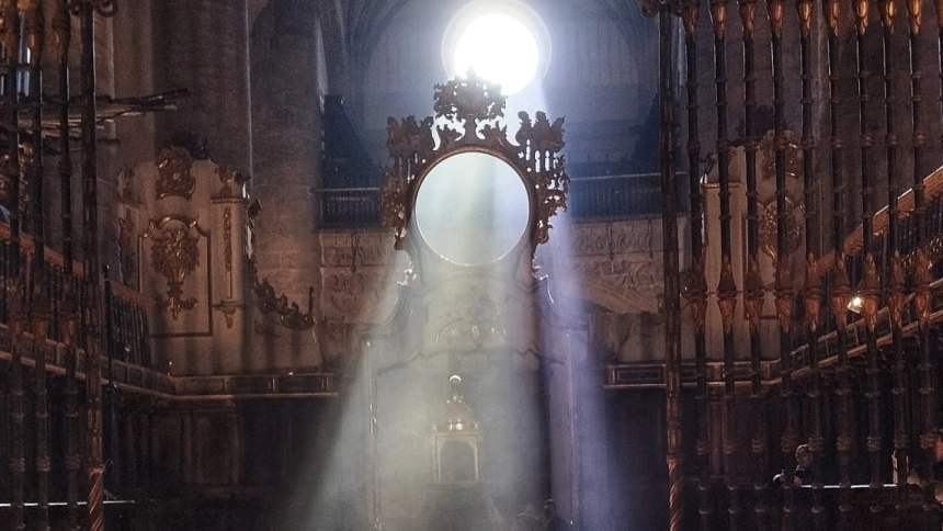 La llegada del equinoccio de primavera ha traído consigo una imagen espectacular a La Rioja. El pasado 20 de marzo, a las 15:46 horas, se produjo el fenómeno del 'rayo equinoccial' en el Monasterio de Yuso, en San Millán de la Cogolla. En este momento, la posición del sol se alinea con el eje de la iglesia, proyectando un rayo de forma elíptica que ilumina el punto exacto donde se cruzan la nave central y el transepto. Este evento astronómico, que marca el inicio de la primavera en el hemisferio norte, se produce cuando el sol incide directamente sobre el ecuador terrestre, igualando la duración del día y la noche.