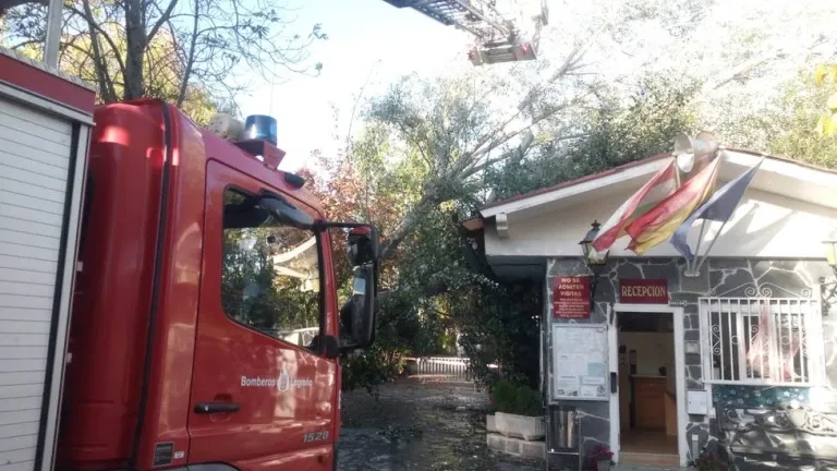 Especialmente intensa fue la tarde del sábado para las dos brigadas de servicio del Parque de Bomberos, en intervenciones tanto directas como en requerimientos de la Policía Local. La actuación más significativa, por su magnitud y su duración, fue la llevada a cabo en el camping de La Playa, con un trabajo de cuatro bomberos que se extendió durante cinco horas, y en el transcurso del cual resultó herido, al ser golpeado por una rama de gran dimensión, uno de sus efectivos, que inicialmente tuvo que ser trasladado al hospital aunque fue dado de alta a última hora de la tarde.