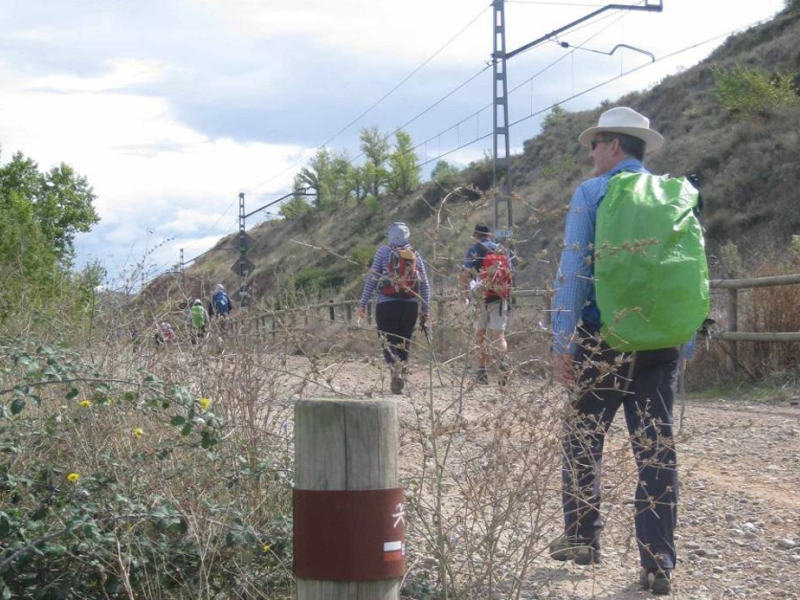 Tras dejar atrás un nudo de incorporación a la carretera llegamos a la Base Militar de Agoncillo y, tras ella, cruzamos de nuevo las vías del ferrocarril y continuamos por un camino que discurre por la linde del bosque.