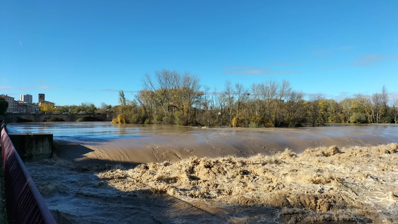 El río Ebro estabiliza la crecida de su caudal a su paso por Logroño mientras avanza en Alfaro