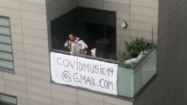 Iñaki Reta, protagonista con su acordeón cantando el himno de Osasuna