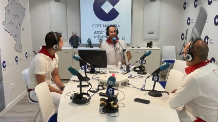 Patxi Artuch y uno de sus hijos, Mikel, cantan en directo en Cope Navarra.