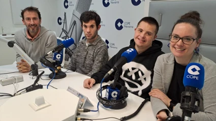 Natalia Galbán, profesora del El Molino, y los alumnos del curso de IA: Asier Abad y Carlor Santana