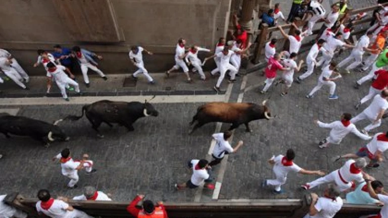 Ya se ha aplicado el antideslizante que se suele dar al recorrido del encierro previo a sanfermines. Vicente García, responsable de la empresa Pavitec, lo ha explicado.