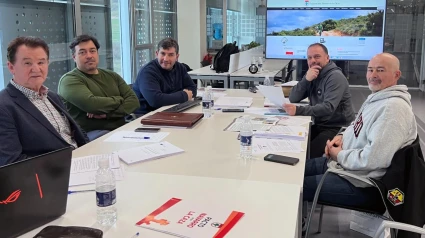 José Ángel Remírez (presidente de la FNC) y Aitor Merino y Nicolás Urbani (asesores de la FNC) se reunieron con representantes del departamento de Pirineos Atlénticos de Francia para intercambiar impresiones.