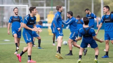 Los rojillo preparan el partido contra el Eibar con Rubén, Roncaglia y Rober Ibáñez trabajando de manera individual.