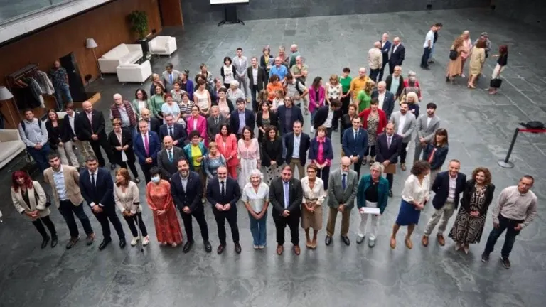 El acto ha tenido lugar en el Atrio de la sede de la Cámara y ha contado, entre otros, con la asistencia de la presidenta de Navarra, María Chivite, y de Ainhoa Unzu, vicepresidenta primera del Parlamento, Juan Luis Sánchez de Muniáin, vicepresidente segundo, Yolanda Ibáñez, secretaria primera, Mikel Zabaleta, secretario segundo, y los parlamentarios Javier Esparza (UPN), Ramón Alzórriz (PSN), Laura Aznal (EH Bildu), Uxue Barkos (Geroa Bai), Javier García (PPN), Carlos Guzmán (Contigo Zurekin) y Maite Nosti (Vox).