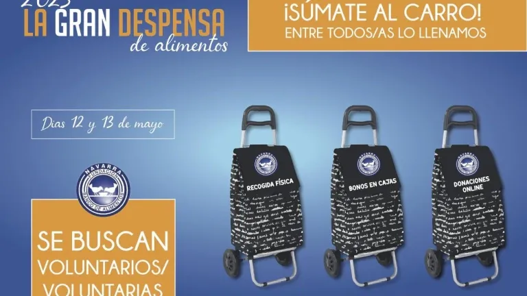 El Banco de Alimentos de Navarra ha anunciado que necesita hasta 425 voluntarios para organizar 'La Gran Despensa de Alimentos 2023', que tendrá lugar los días 12 y 13 de mayo en distintos puntos y firmas comerciales. Así lo ha asegurado en Cope Navarra la presidenta del BAN Marisol Villar.