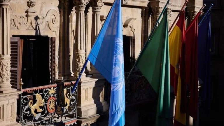 La colocación este martes de la bandera de la ONU en las fachadas de organismos públicos forma parte de una campaña de concienciación ciudadana de la Asociación de Naciones Unidas en España (ANUE). Esta entidad es una ONG española creada en 1962 que busca promover los objetivos de la ONU y dar apoyo a sus programas y es miembro de la correspondiente federación de asociaciones que mantienen esos mismos fines, la FMANU.