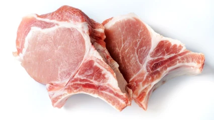Se pone Poner aceite con el ajo machacado en una sartén a calentar. Sobre ese aceite, se fríe las chuletas dorándolas por los dos lados. Se retiran y se colocan en una bandeja de horno. Se limpian bien los champiñones, cortando los tallos por encima de la zona con tierra y piedrecillas, se lavan en abundante agua, se escurren bien, se cortan en láminas finas y se fríen en el aceite donde hemos dorado las chuletas. Se vierte la nata líquida sobre los champiñones, se añade la sal y pimienta y se deja que hierva 5 minutos. Se colocan las chuletas en una bandeja de horno y se distribuyen la mezcla de nata y champiñones por encima, se espolvorea el queso rallado y se mete en el horno precalentado a 200°C durante 5 ó 7 minutos hasta que se gratinen. Se sirven en platos precalentados.