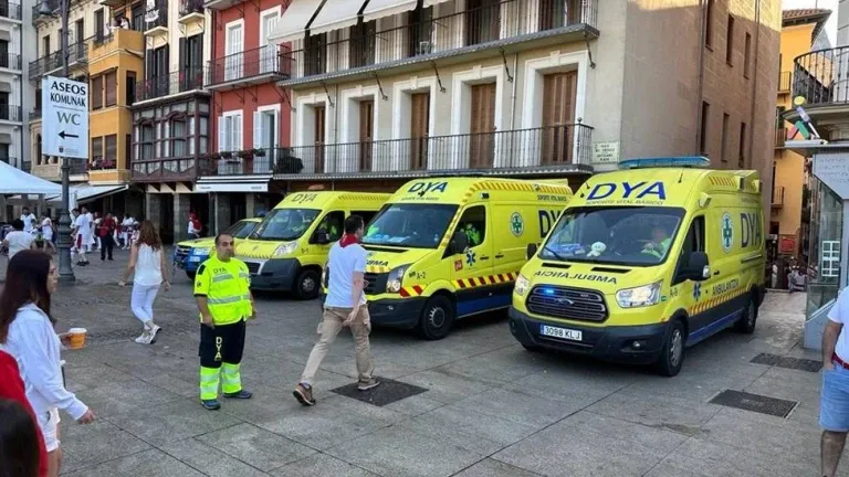 Durante el lunes 10 de julio y la madrugada de este martes, 11 de julio, DYA ha realizado un total de 58 atenciones, entre ellas destacan 41 personas atendidas in situ y un total de 17 pacientes que han sido trasladados por ambulancias de DYA Navarra a centros sanitarios.