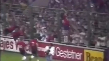 1985. Gol de José Manuel Echeverría ante la Real Sociedad que supone la clasificación de Osasuna para la disputa de su primera competición europea.