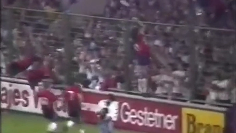 1989. Tanto de Pizo Gómez ante el Real Madrid en casa el dia del petardo.